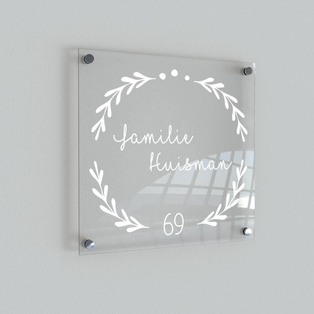 Chique naambordje van gepolijst acrylglas, Floral-Line Ivy 20x20 cm.