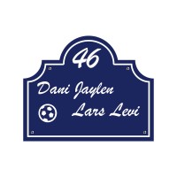 Naambordje van donkerblauw plexiglas met nostalgische uitstraling. Formaat 26x21cm. ✅ Zeer snelle levering!