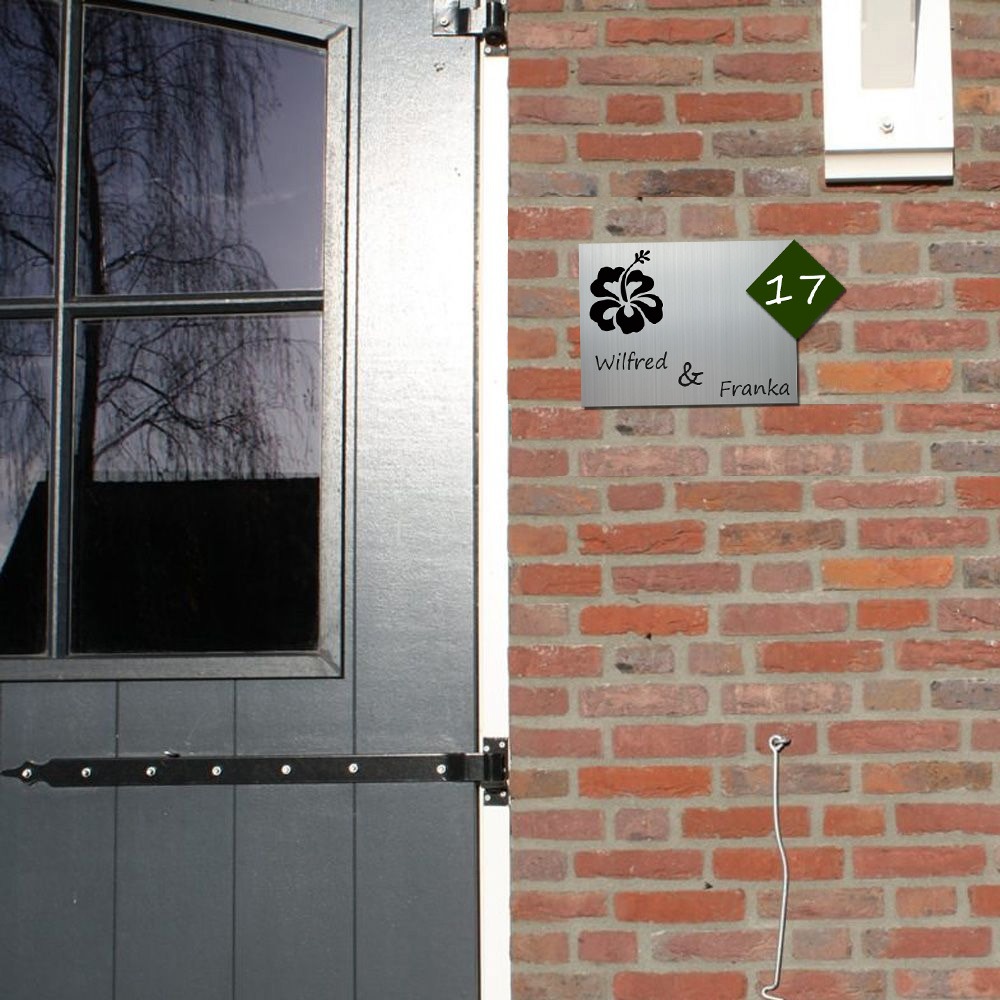 Naambordje RVS-look met groen acrylplaatje erop voor huisnummer. Afmeting 25x20cm. ✅ Indien voor 15.u besteld, dezelfde dag op de post.