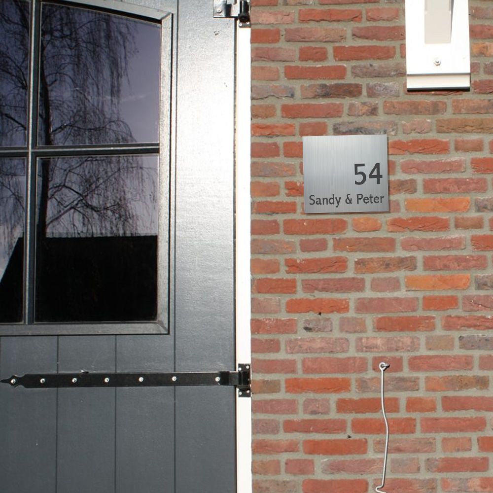 Naambordje van RVS-look met of zonder extra huisnummer. Ontwerp hier je naambordje en bestel! Wij versturen dezelfde (werk)dag en leveren portvrij.