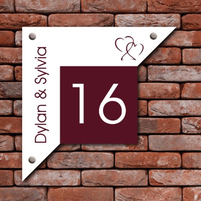 Kunststof naambordjes in de lijn van Gracieux Line in de naambordjes kleur wit en de achtergrond van het huisnummer is rood.