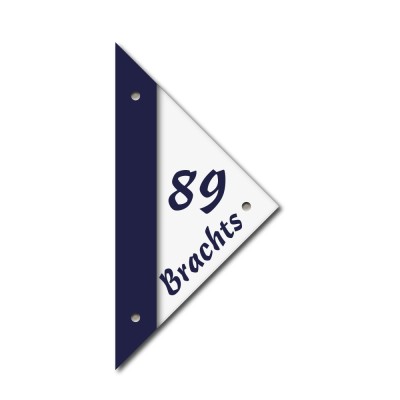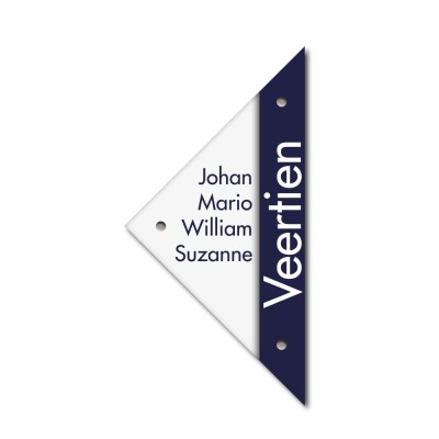 Kunststof naambordjes in de lijn van Moderne Line in de naambordjes kleur wit met ernaast blauw zodat je een mooie verdeling van teksten, naam en huisnummer kan maken.
