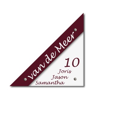 Kunststof naambordjes in de lijn van Moderne Line in de naambordjes kleur wit met ernaast rood zodat je een mooie verdeling van teksten, naam en huisnummer kan maken.