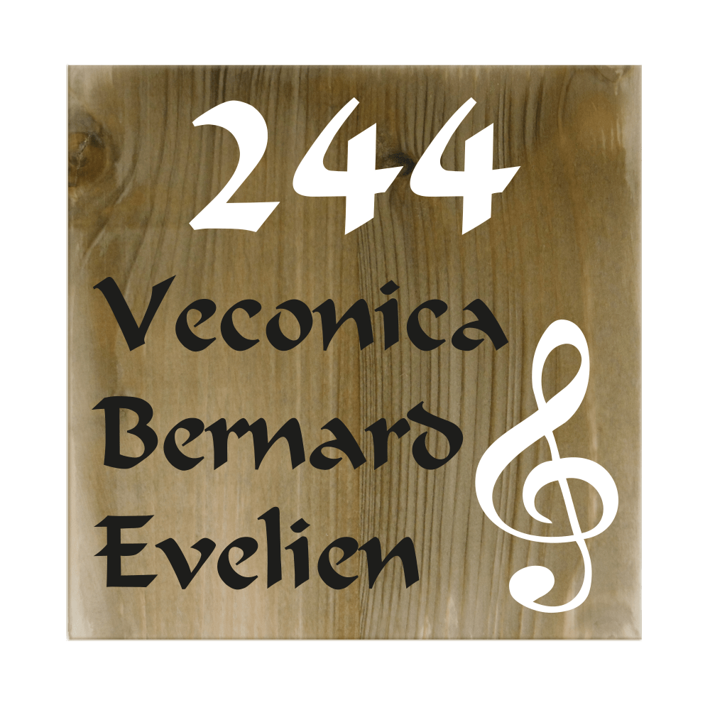 Naambordje van robuust steigerhout. Het bord heeft een dikte van bijna 3 cm. Het naambord wordt geleverd inclusief bevestigingsmaterialen (onzichtbare bevestiging aan de achterzijde). De levertijd is 1 dag.