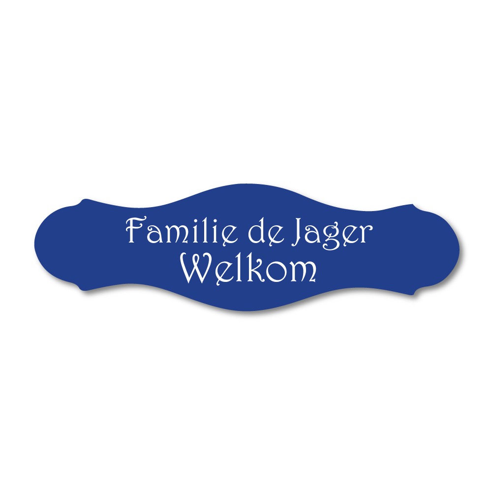 Een sierlijk naamplaatje in de kleur blauw. Dat is een must-have voor bij de brievenbus. Wordt geleverd uit onze eigen fabriek en vakkundig voor je geproduceerd. Start met het online ontwerpen van je eigen plaatje.
