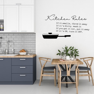 Onze serie "muurstickers keuken" kunnen niet alleen op de muur geplakt worden maar ook op keukenkasten, keukendeuren e.d. Plak een leuke keuken tekst op je buffetkast of op het kastje boven het aanrecht. De kleur kan je aanpassen aan het kastje. Wij hebben een ruime keuze "muurstickers keuken" maar je kan ook zelf je keuken stickers ontwerpen. Heb je een mooie zwart/wit afbeelding, dan kan je deze uploaden en er zelf een tekst bij verzinnen. Zo krijg je een hele persoonlijke muurdecoratie in je keuken.