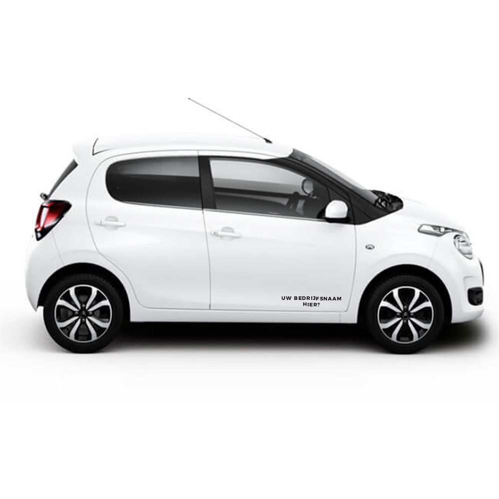 Autosticker met tekst van 40 cm breed. Wordt geleverd binnen 1 werkdag. Je bepaalt zelf de gehele inhoud van de sticker.