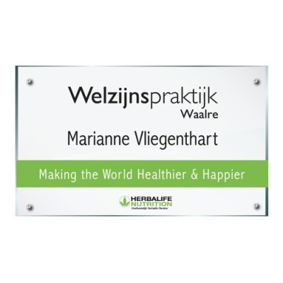 Bedrijfsnaamborden van helder acrylaat. Mooi helder acrylaat voorzien van uw tekst en logo. Mooie kwaliteit bedrijfsbordjes.